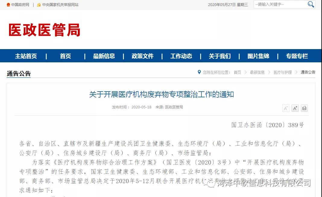 近日,国家卫健委、生态环境部、工业和信息化部、公安部、住房和城乡建设部、商务部、市场监管总局联合印发《关于开展医疗机构废弃物专项整治工作的通知》(以下简称《通知》),明确今年5月-12月开展医疗机构废弃物专项整治工作。